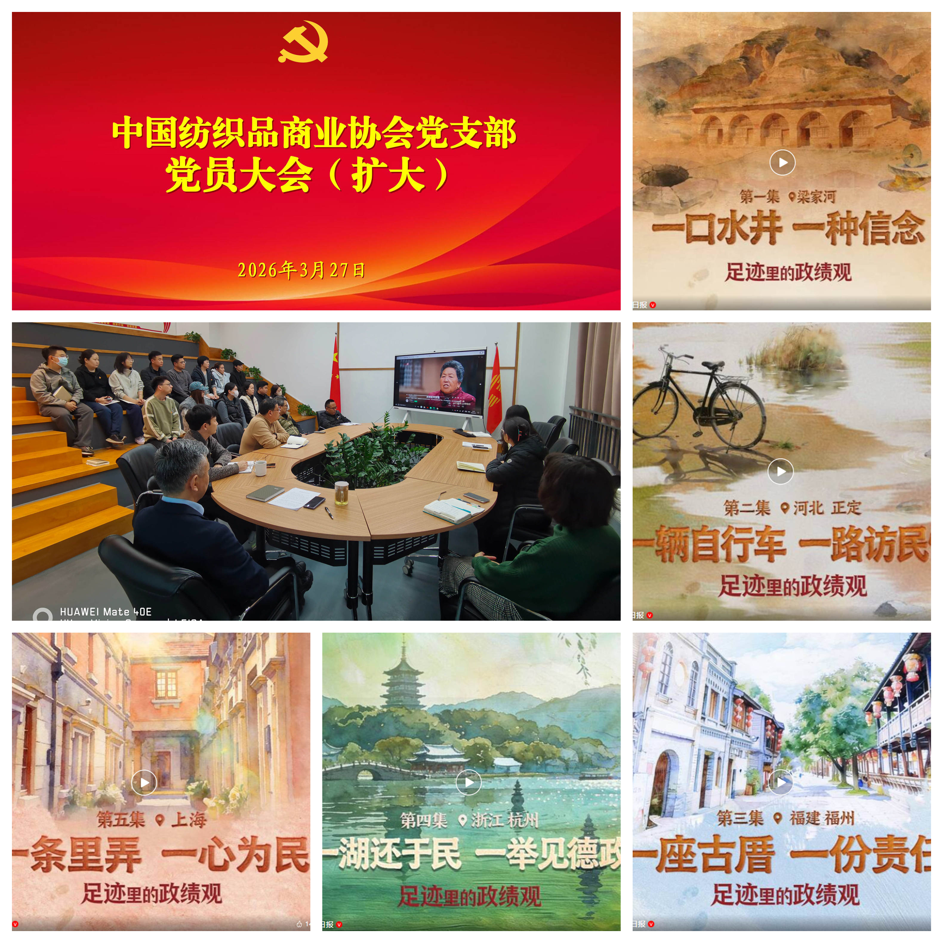 3月27日,协会党支部书记雷利民主持召开支部党员大会(扩大),落实“第一议题”制度,观看《足迹里的政绩》微视频(第一集《陕西梁家河  一口水井,一种信念》;第二集《河北正定  一辆自行车,一路访民情》;第三集《福建福州  一座古厝,一份责任》;第四集《浙江杭州  一湖还于民,一举见德政》;第五集《上海   一条里弄,一心为民》),就树立和践行正确政绩观学习教育进行动员部署。